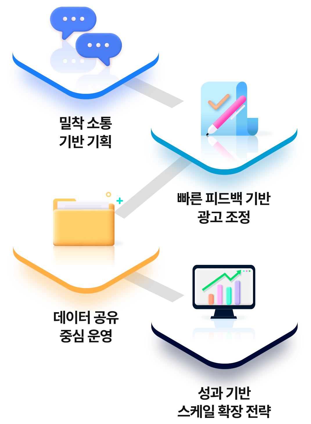![]() | 성과가 바로 나오지 않으면 종료소비자는 브랜드를 기억하지 못하고 알고리즘 학습은 중단되며 데이터는 축적되지 않습니다 |